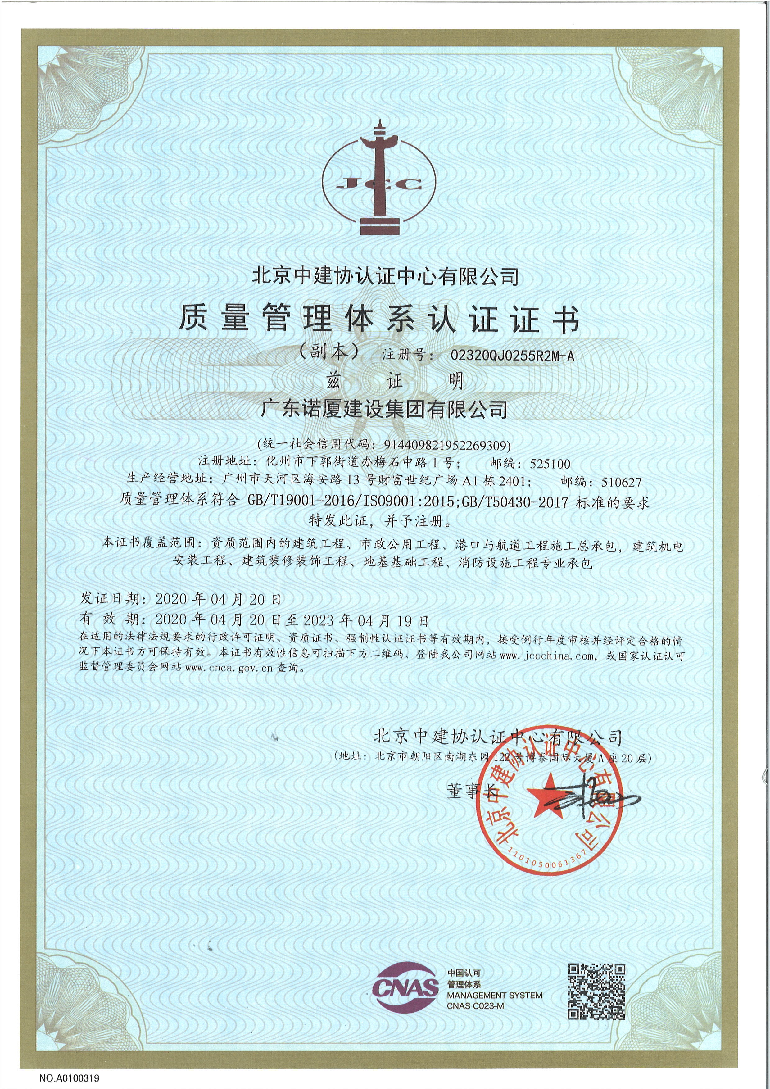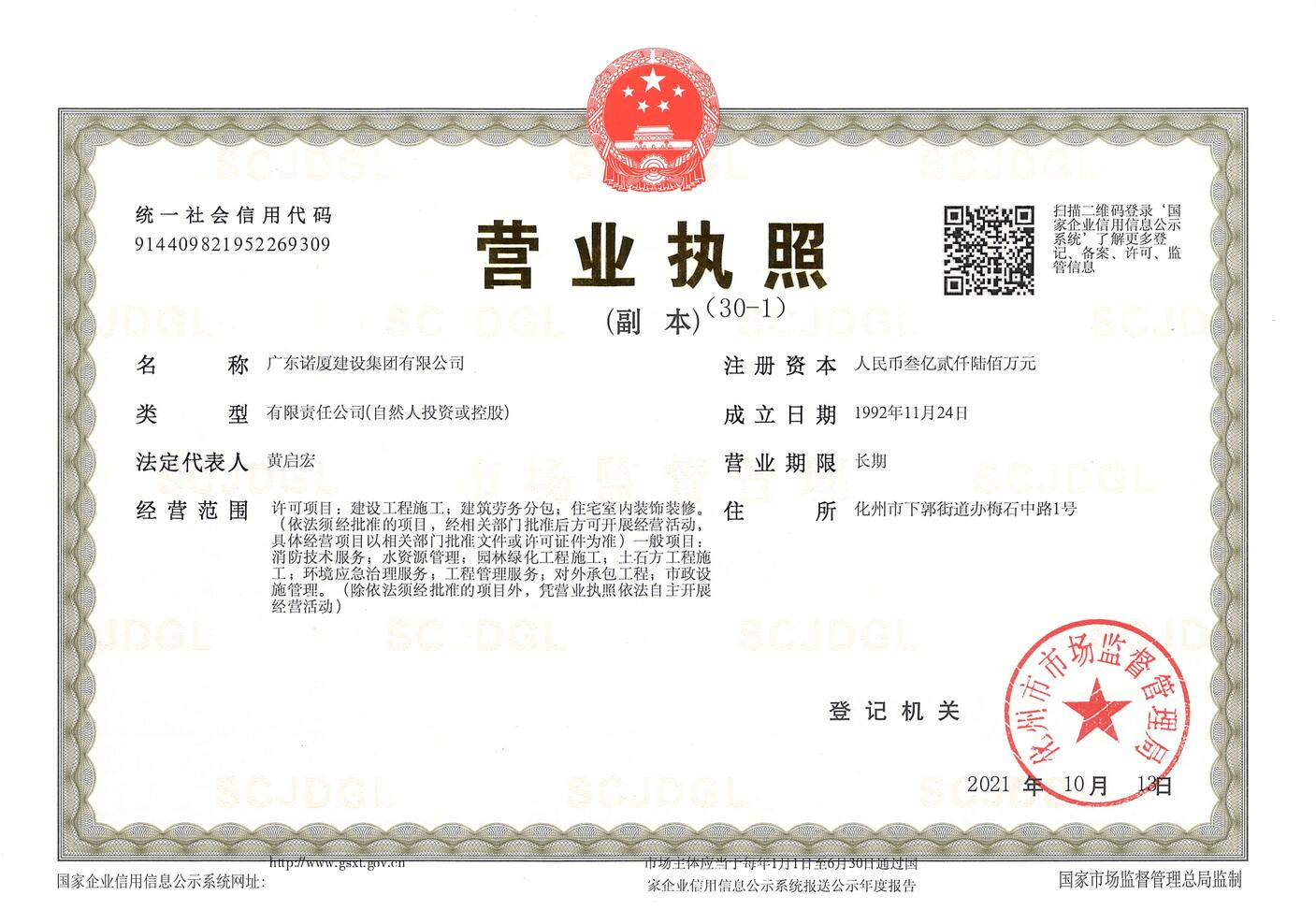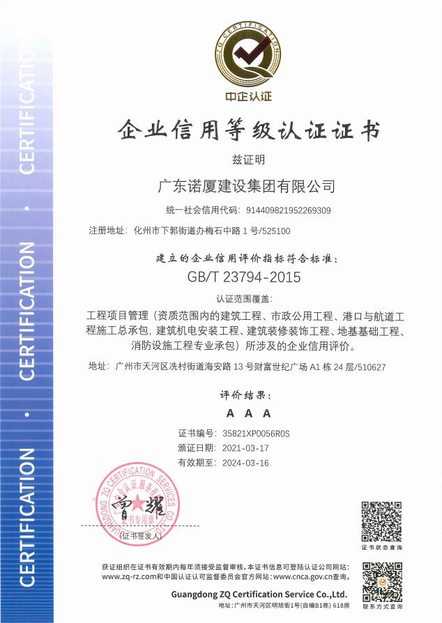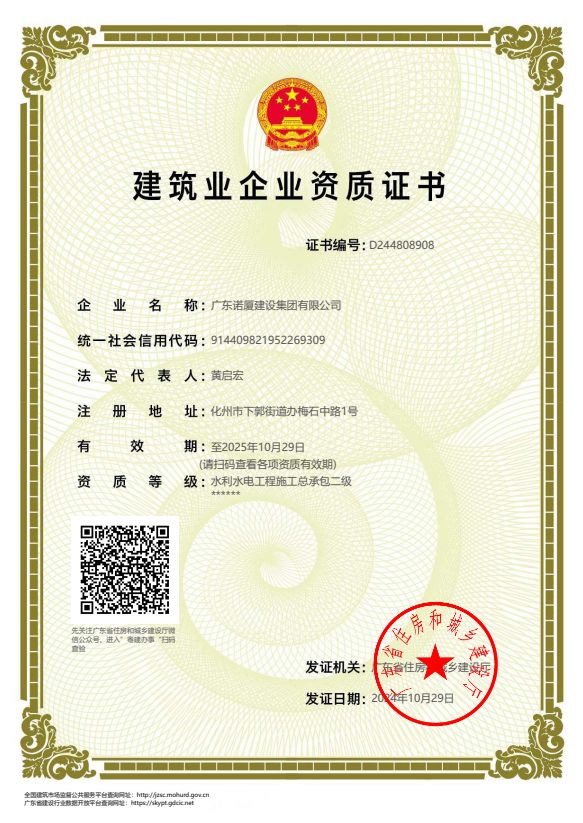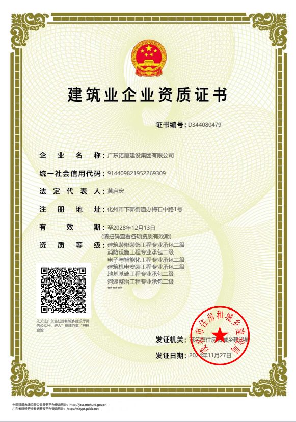 廣東諾廈建設(shè)集團(tuán)有限公司是諾廈集團(tuán)的核心企業(yè),具備國家房屋建筑工程施工總承包壹級(jí)、市政工程施工總承包壹級(jí)、港口與航道工程總承包、建筑裝修裝飾工程、消防設(shè)施工程、地基基礎(chǔ)工程、機(jī)電設(shè)備安裝工程、體育場(chǎng)地設(shè)施工程、建筑智能化工程、河湖整治工程、水利水電工程等資質(zhì)。......